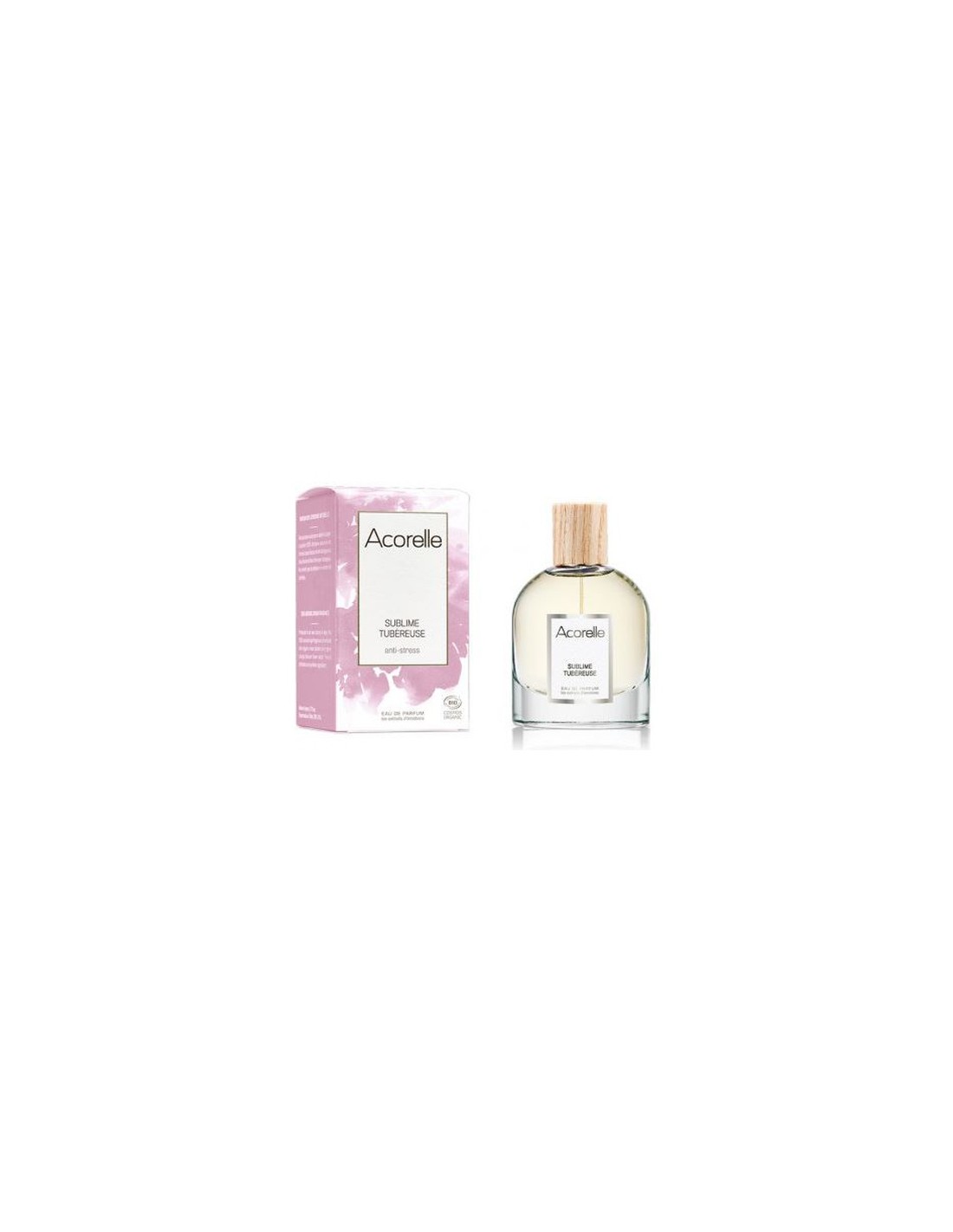 Eau de parfum Sublime Tubereuse de Acorelle es una creación olfativa orgánica floral que induce un efecto calmante. La fragancia presenta notas de salida chispeantes y afrutadas, enriquecidas por frutas del sol. En un abrazo de iris y angélica, rápidamente se despliega un aroma de ramo de flores blancas. Sus notas de fondo se suavizan en un acorde ámbar-amaderado-almizclado, ofreciendo una estela intensa y sensual. Este perfume utiliza aceites esenciales para influir en las emociones, liberando recuerdos y sentimientos al actuar en áreas específicas del cerebro, ayudando así a restablecer el equilibrio psicoemocional.