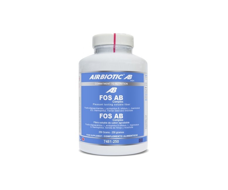 El Complejo FOS AB (Fibra Soluble) de Airbiotic es un complemento alimenticio elaborado con FOS (fructo-oligosacáridos), un tipo de fibra soluble que resulta especialmente beneficiosa para la salud. Estos carbohidratos son solubles y pueden absorber agua, lo que ayuda a mantener la humedad en el sistema digestivo.