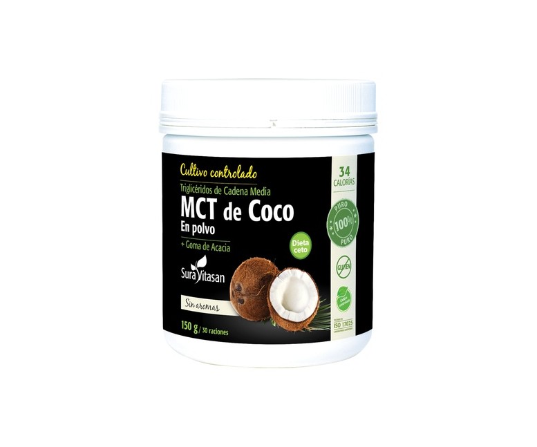 MTC de Coco en Polvo de Sura Vitasan se elabora exclusivamente con cocos cultivados de forma orgánica, lo que lo convierte en una fuente natural rica en triglicéridos de cadena media (MCT). Este producto está formulado con acacia orgánica, que es una fuente de fibra soluble. Además, MTC de Coco en Polvo es versátil y proporciona grasas cetogénicas ideales para un estilo de vida activo y saludable. Su textura suave y sabor neutro se integran perfectamente en bebidas frías o calientes, vinagretas, productos horneados y soluciones culinarias saludables e innovadoras. Es una excelente opción para incrementar su ingesta energética con calorías beneficiosas, ideal para dietas cetogénicas; además, es muy fácil de digerir y metabolizar.