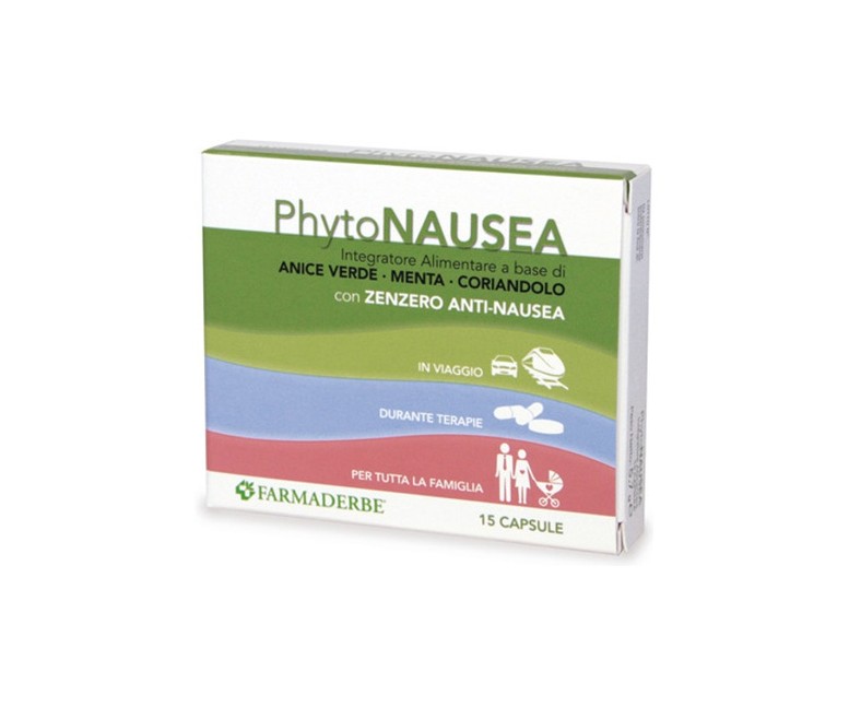 Phyto Nausea de Farmaderbe es un complemento alimenticio formulado con Anís Verde, Menta, Cilantro y Jengibre, ideal para aliviar las náuseas.