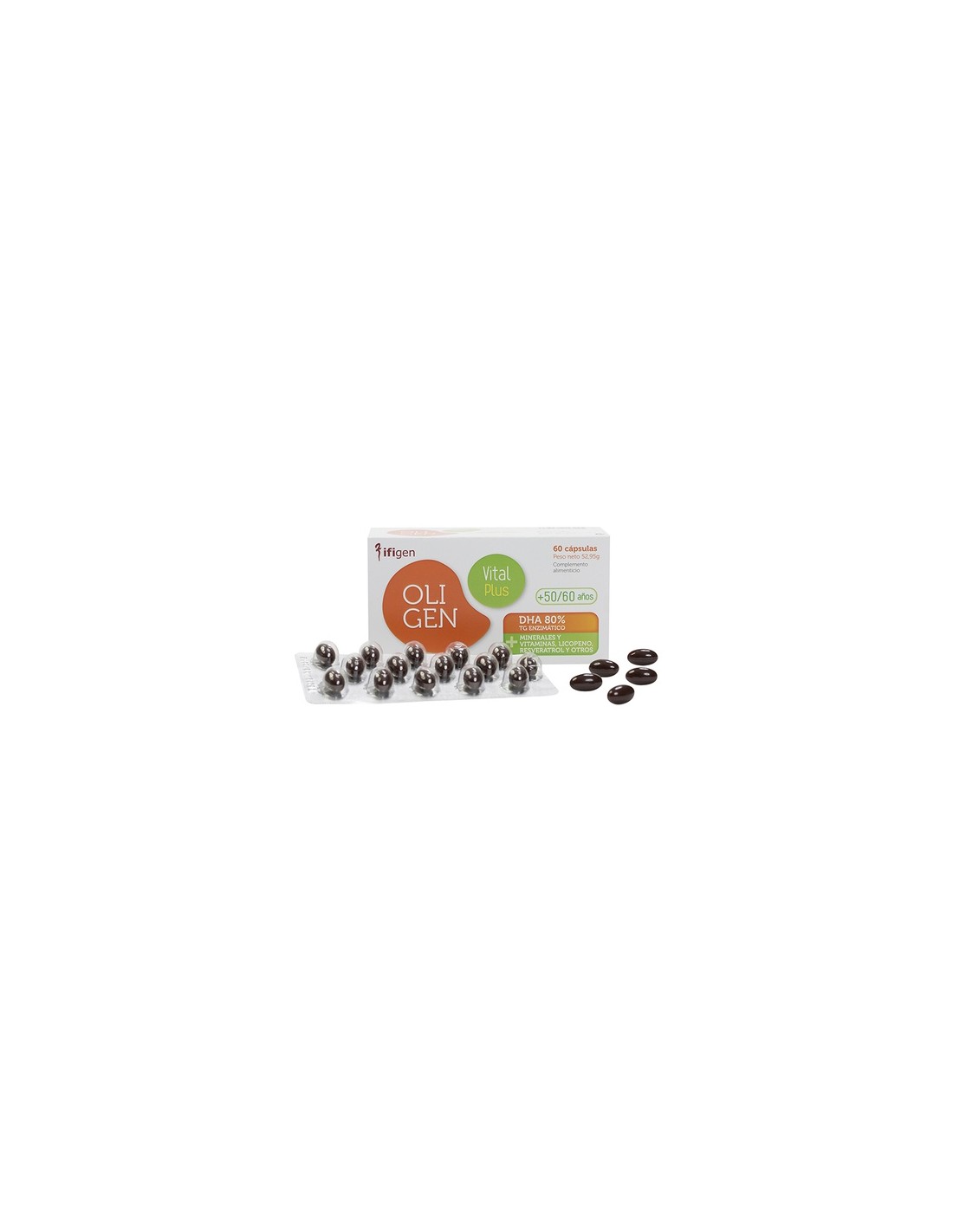 Oligen Vital Plus de Ifigen satisface de manera integral las necesidades de DHA+EPA, ácido fólico y hierro, así como de vitaminas y minerales esenciales. La ingesta de DHA (ácido docosahexaenoico), ya sea solo o en combinación con EPA (ácido eicosapentaenoico), ayuda a mantener niveles normales de triglicéridos en sangre y una presión arterial adecuada.