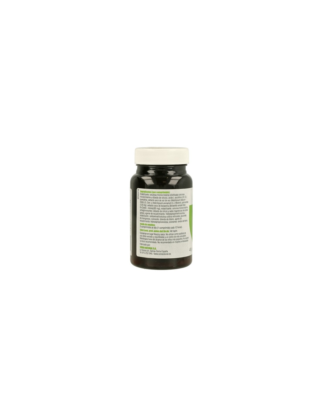 Estabilizante: celulosa microcristalina silicificada (celulosa microcristalina y dióxido de silicio), Ácido L-ascórbico (Vit. C), Quercetina, Extracto seco de sol de oro (Helichrysum italicum (Roth.) G. Don. y Helichrysum arenarium (L.) Moench, parte aérea) (125 mg), Extracto seco de boswellia (Boswellia serrata Roxb. Ex Colebr., resina) (60 mg), Estabilizante: celulosa microcristalina, Antiadherentes: dióxido de silicio y sales magnésicas de ácidos grasos, Agente de recubrimiento: hidroxipropilmetilcelulosa, Estabilizante: carboximetilcelulosa sódica reticulada, Gluconato de manganeso, Colorante: dióxido de titanio, Agente de recubrimiento: hidroxipropilcelulosa, Colorantes: óxidos de hierro