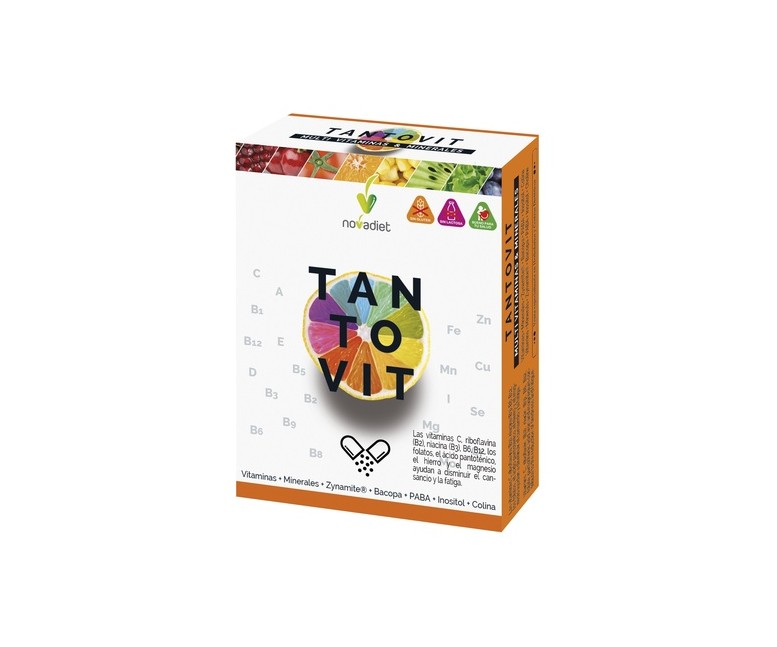 Tantovit, el multivitamínico de Novadiet, es un complemento alimenticio que proporciona una mayor cantidad y variedad de vitaminas y minerales en comparación con los alimentos por separado, garantizando así un adecuado suministro de la mayoría de los micronutrientes.